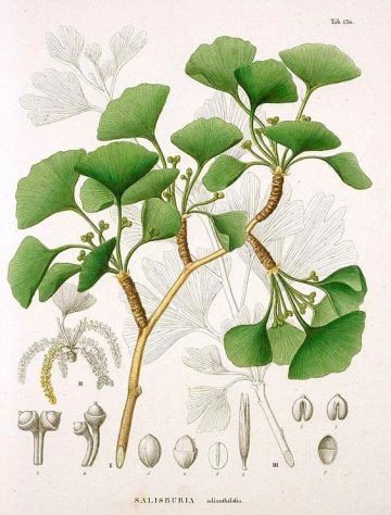 Botanická charakteristika: Dvoudomý nahosemenný strom se silným kmenem a kuželovitou až rozložitou korunou. Běžně dorůstá do výšky 30-40 m. Listy jsou svěže zelené, stopkaté, s široce klínovitou dvoulaločnatou čepelí a vějířovitou žilnatinou. Vyrůstají na silně zkrácených větvičkách ve svazečcích. Jako nahosemenná rostlina nemá květy ani plody, semena jsou velikosti třešně s dužnatým osemením. K opylení dochází v květnu až červnu, semeno dozrává v říjnu až listopadu a mění barvu ze zelené na žlutou.
