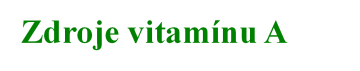 Olej z tresčích jater (1 000 IU/1 g), hovězí játra vařená (705 IU/1 g), kuřecí játra vařená (143 IU/1 g), bataty (32 IU/1 g), tykev (25 IU/1 g), máslo (230 IU/1 g), špenát (11 IU/1 g), čedar (10 IU/1 g), kapusta kadeřavá (8 IU/1 g), vejce vařené (5 IU/1 g).