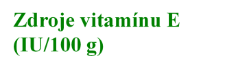 Olej z pšeničných klíčků (224); řepkový olej (66); slunečnicový olej (61); avokádo (4); chřest, brokolice (~2); ryby (~3); ústřice, máslo (~2,5).
